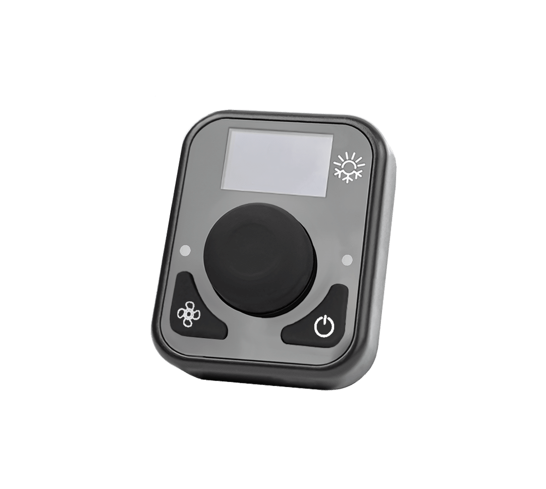 Tämä ohjauspaneeli tarjoaa kätevän ja selkeän ratkaisun AUTOTERM Air & Flow -lämmittimien hallintaan. Yhdellä kiertonupilla ja pienellä näytöllä varustettu käyttäjäystävällinen paneeli mahdollistaa asetusten vaivattoman säätämisen.